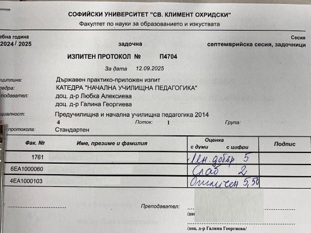 Резултати от държавните изпити, месец септември 2025